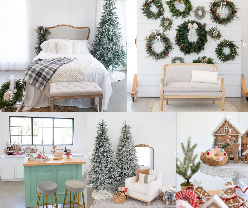 Christmas with that light and bright feel! PJs look super cute with the bed and baking set. Or you can go for a classy look with the wreath wall and trees with chair sets. So many options here!